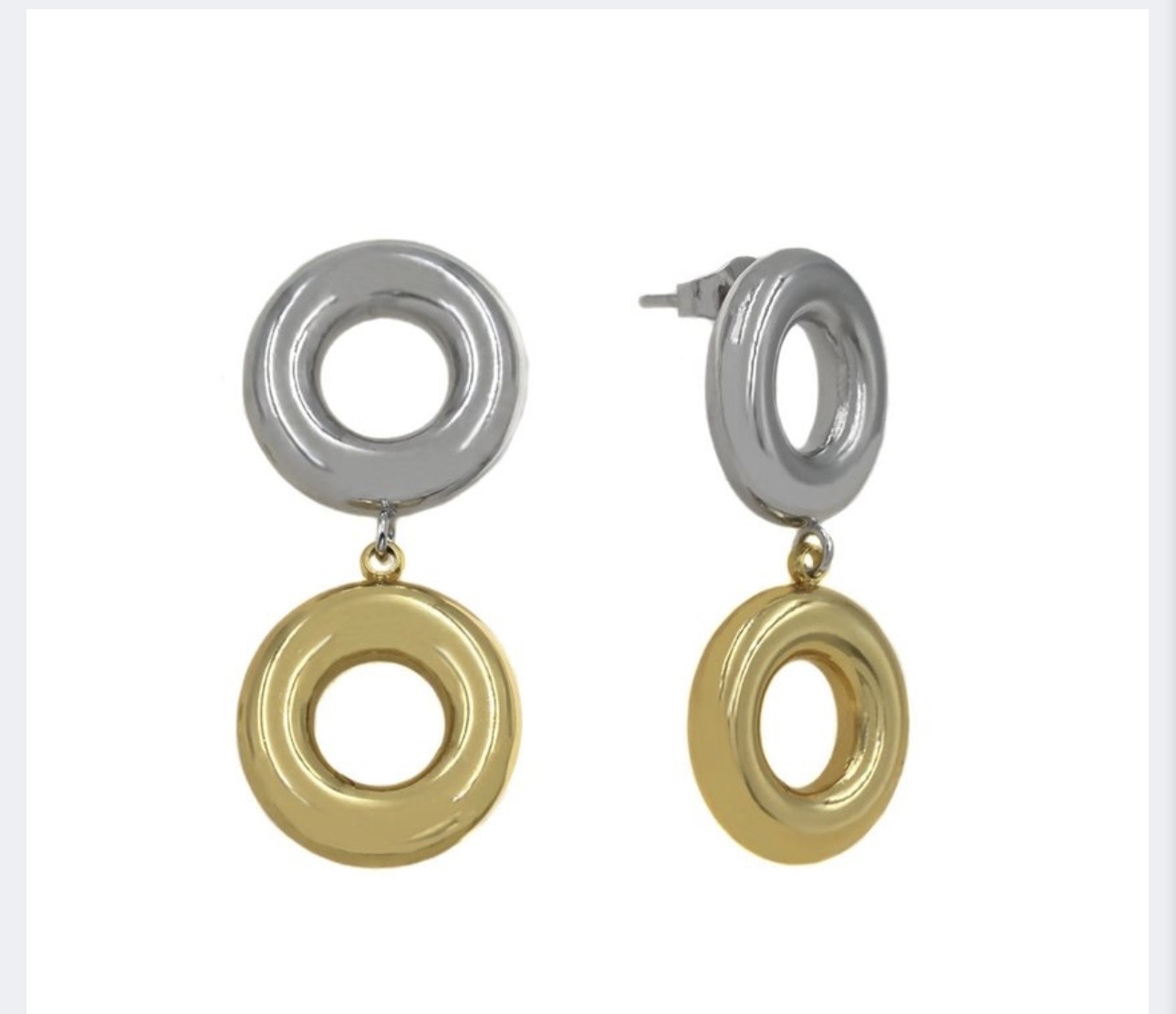 Σκουλαρίκια Ατσάλινα Καρφάκι με Κρεμαστό Κύκλο 35x16mm δίχρωμο.