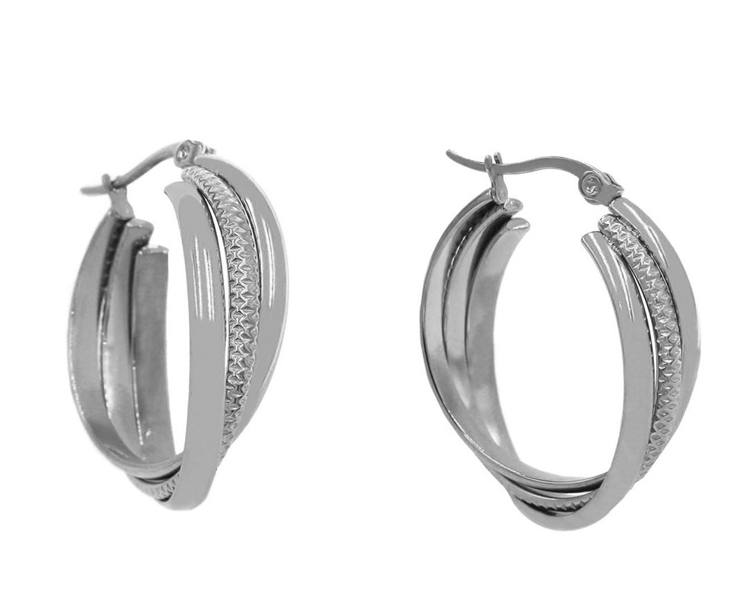 Σκουλαρίκια Ατσάλινα Κρίκοι 3πλοί Ανάγλυφο και Λουστρέ 9x31mm