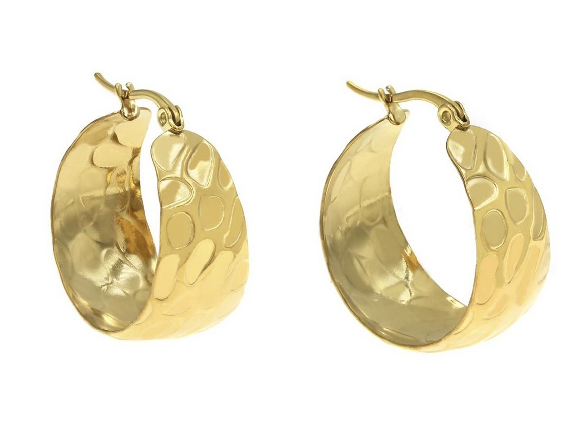 Σκουλαρίκια Ατσάλινα Κρίκος Ανάγλυφος με Σχέδιο 9x30mm χρυσό.