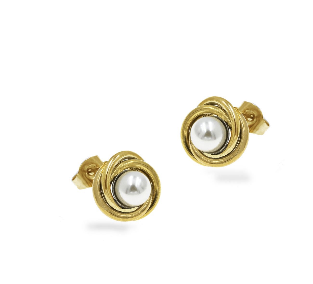 Σκουλαρίκια Ατσάλινα Φωλιά 12mm με Πέρλα 10mm χρυσό.