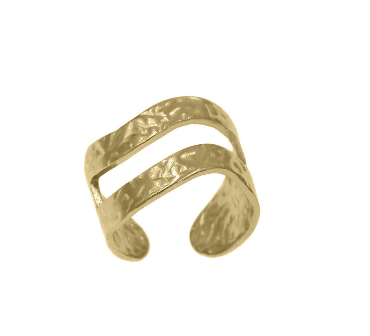 Δαχτυλίδι Ατσάλινο Δίσειρο Κυματιστό Σφυρήλατο 16mm χρυσό.