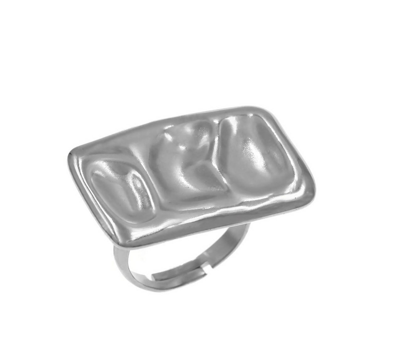 Δαχτυλίδι Ατσάλινο Ορθογώνιο Ανισόπεδο Ανοιγόμενο 18.5x30mm Ασημί.