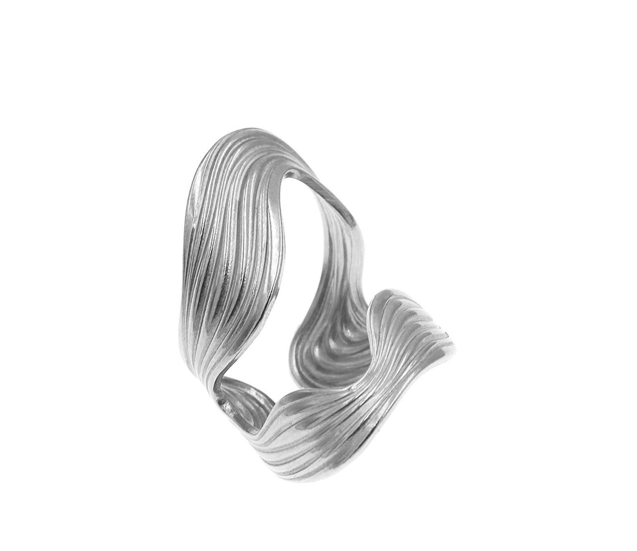 Δαχτυλίδι Ατσάλινο Κυματιστό με Γραμμές 30mm Ασημί.
