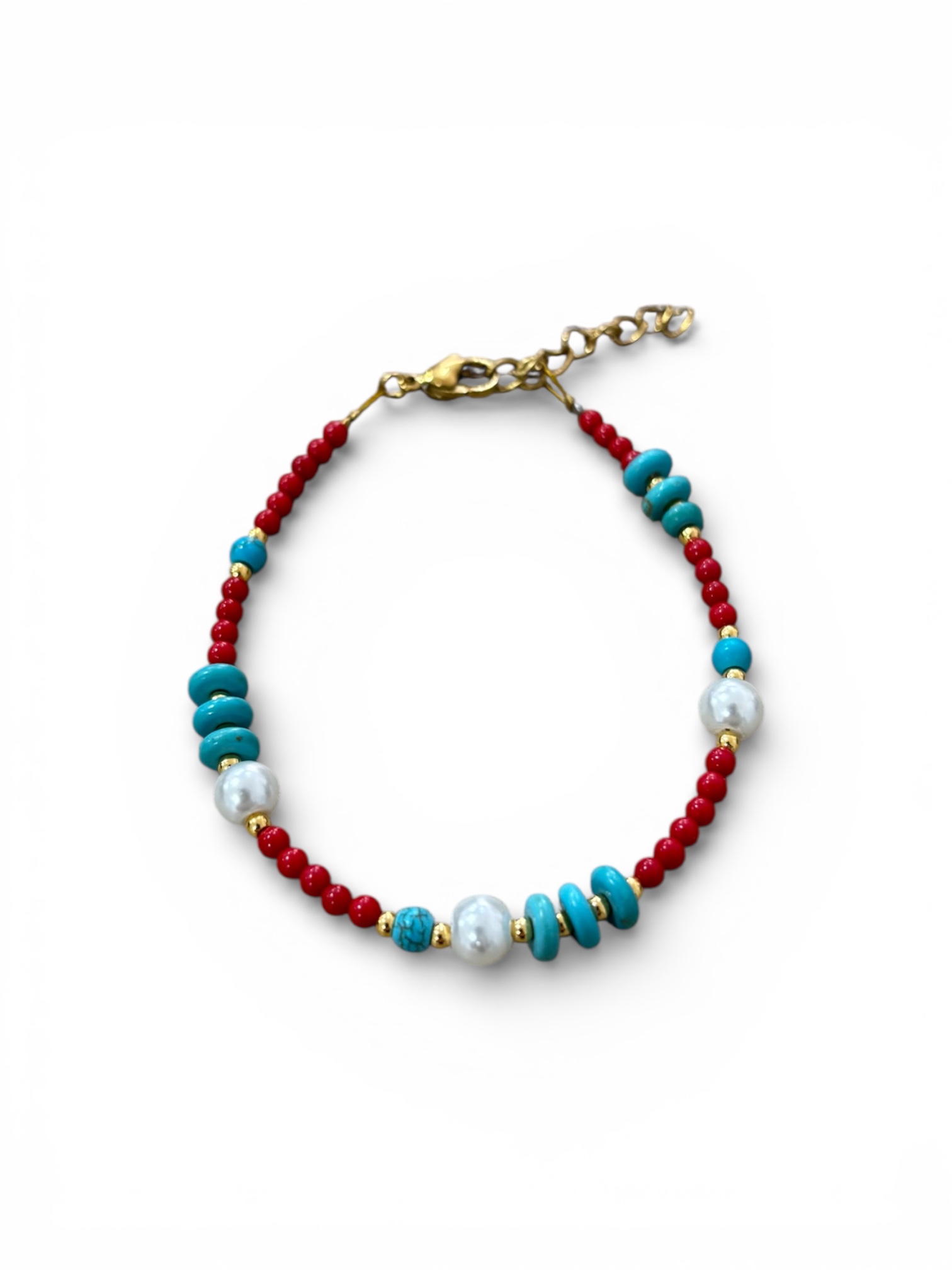 Χειροποίητο βραχιόλι με ημιπολύτιμες πέτρες κοράλλι μπαμπού, χαολίτης, πέρλες