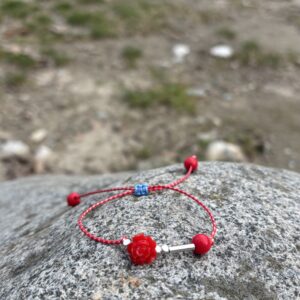 Χειροποίητο βραχιόλι μάρτης με επιχρυσωμένο φλουράκι.