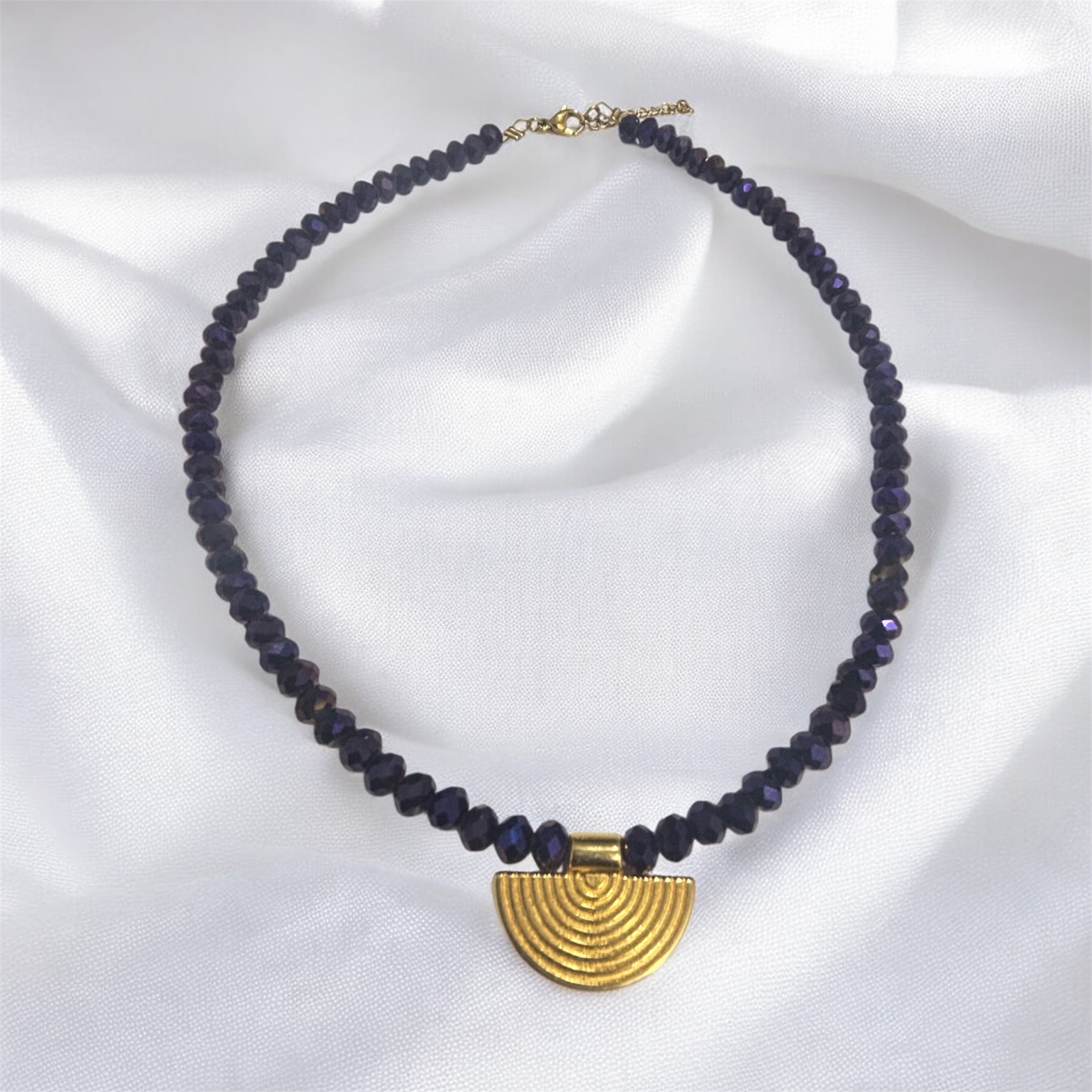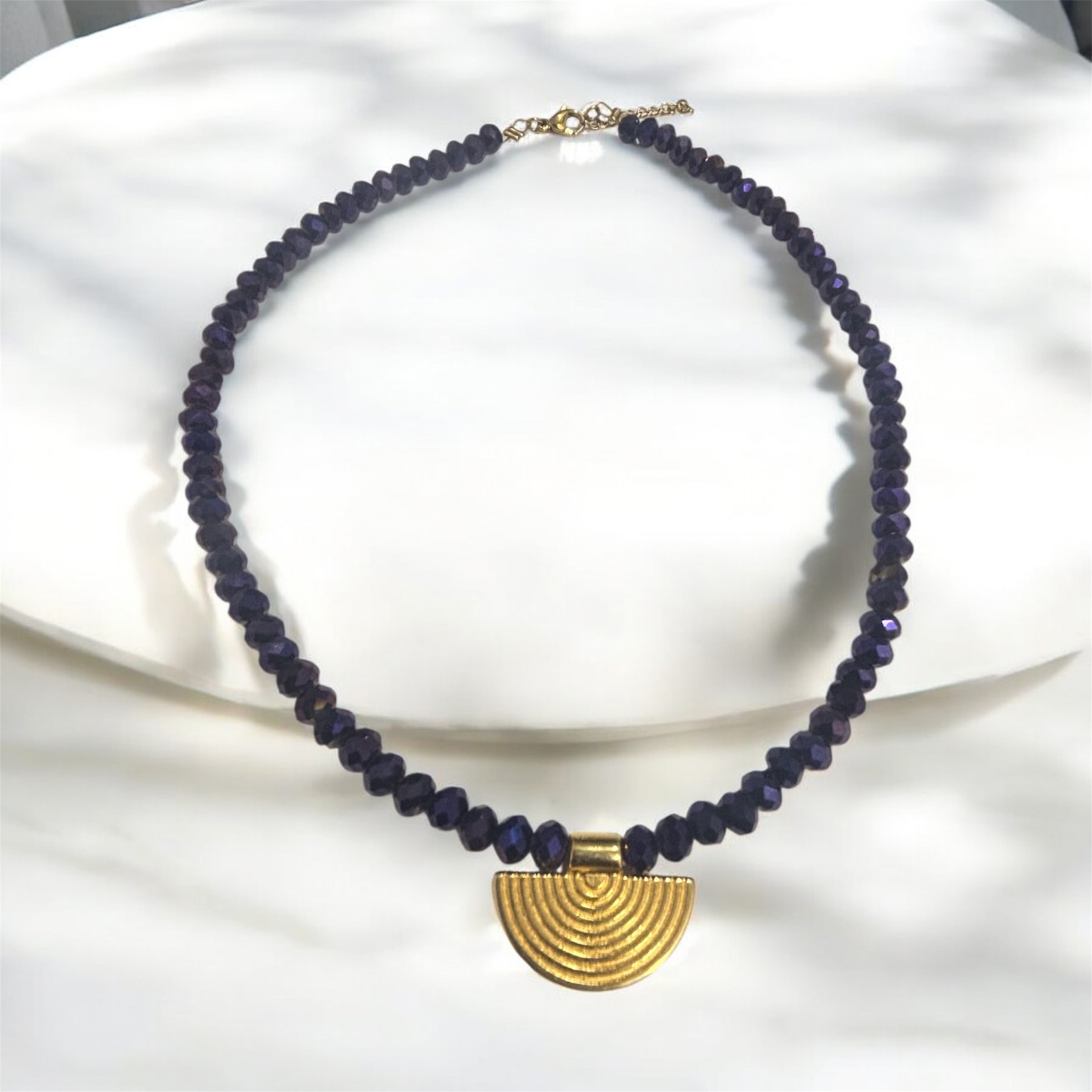 Χειροποίητο κολιέ με χάντρες κρύσταλλο σε μωβ χρώμα
