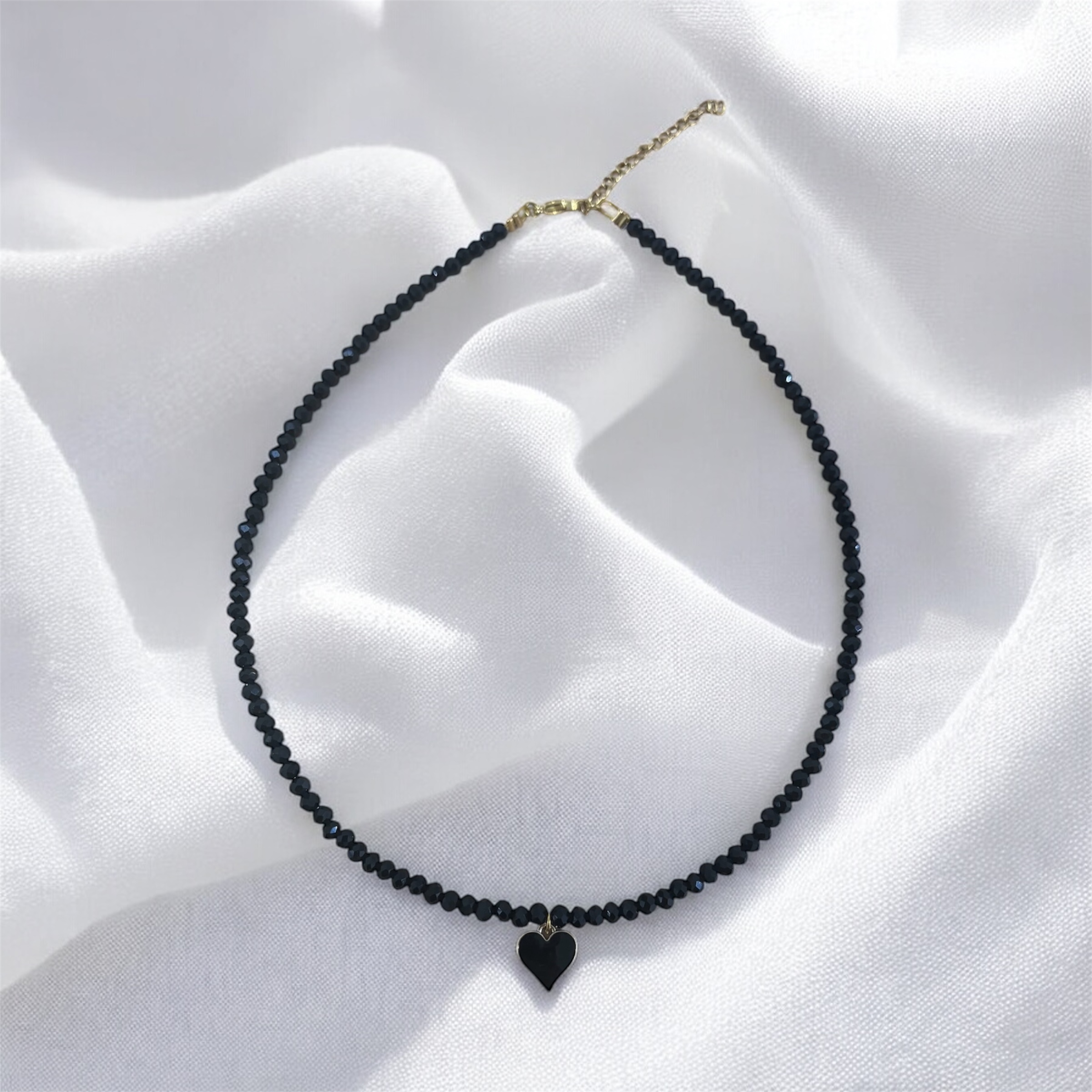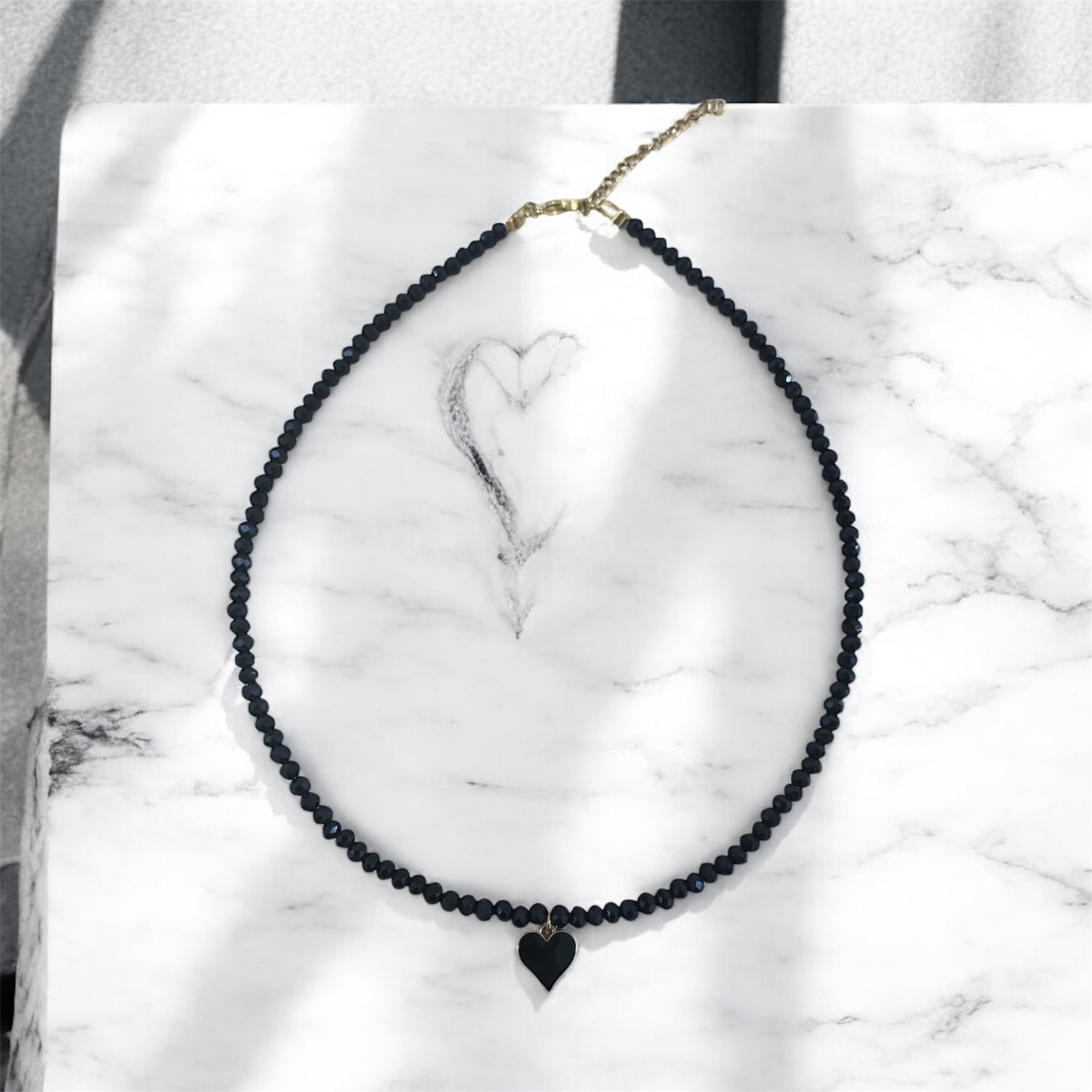 Χειροποίητο κολιέ με χάντρες κρύσταλλο σε μαύρο χρώμα