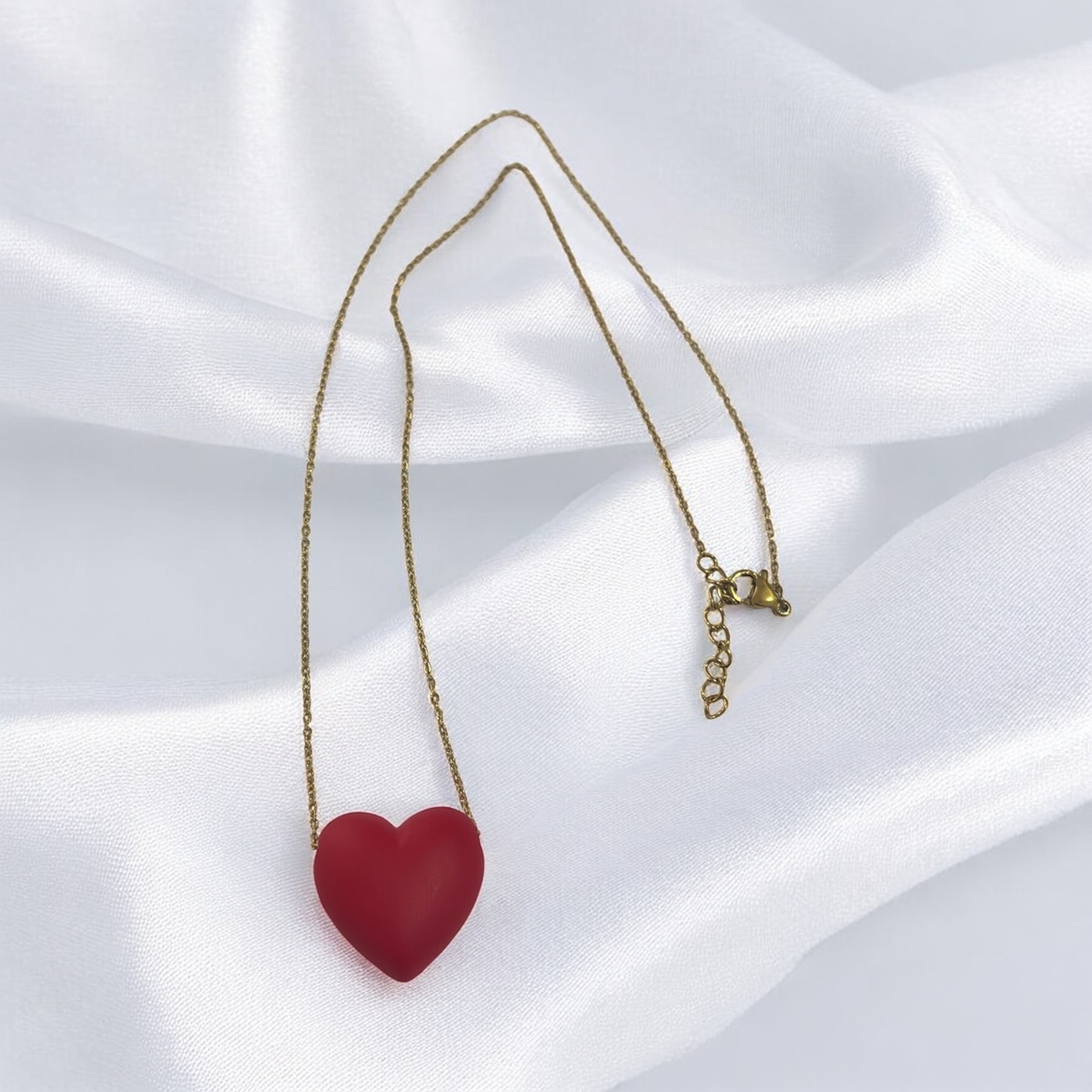 Κολιέ ατσάλινη αλυσίδα με κεραμική καρδιά κόκκινη.
