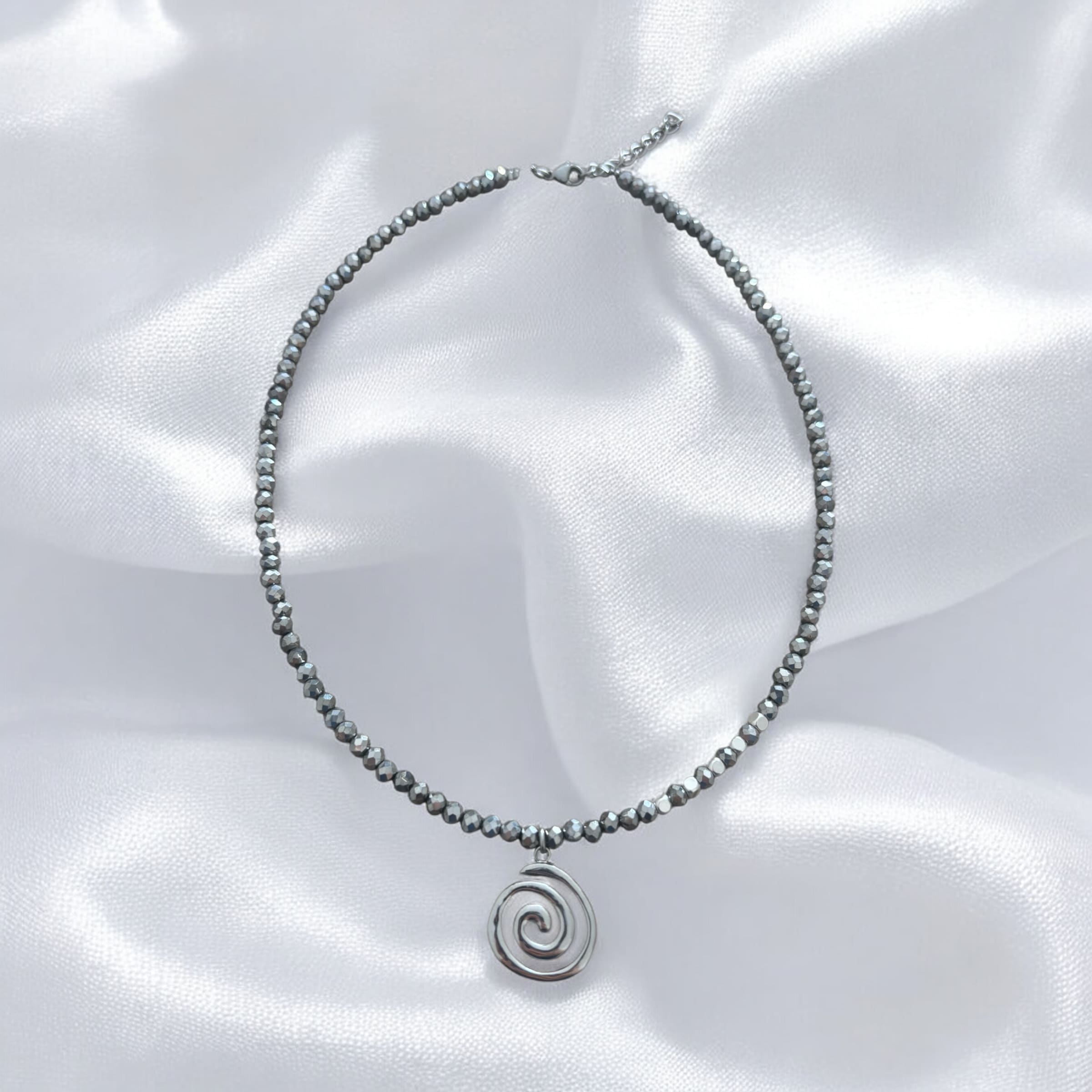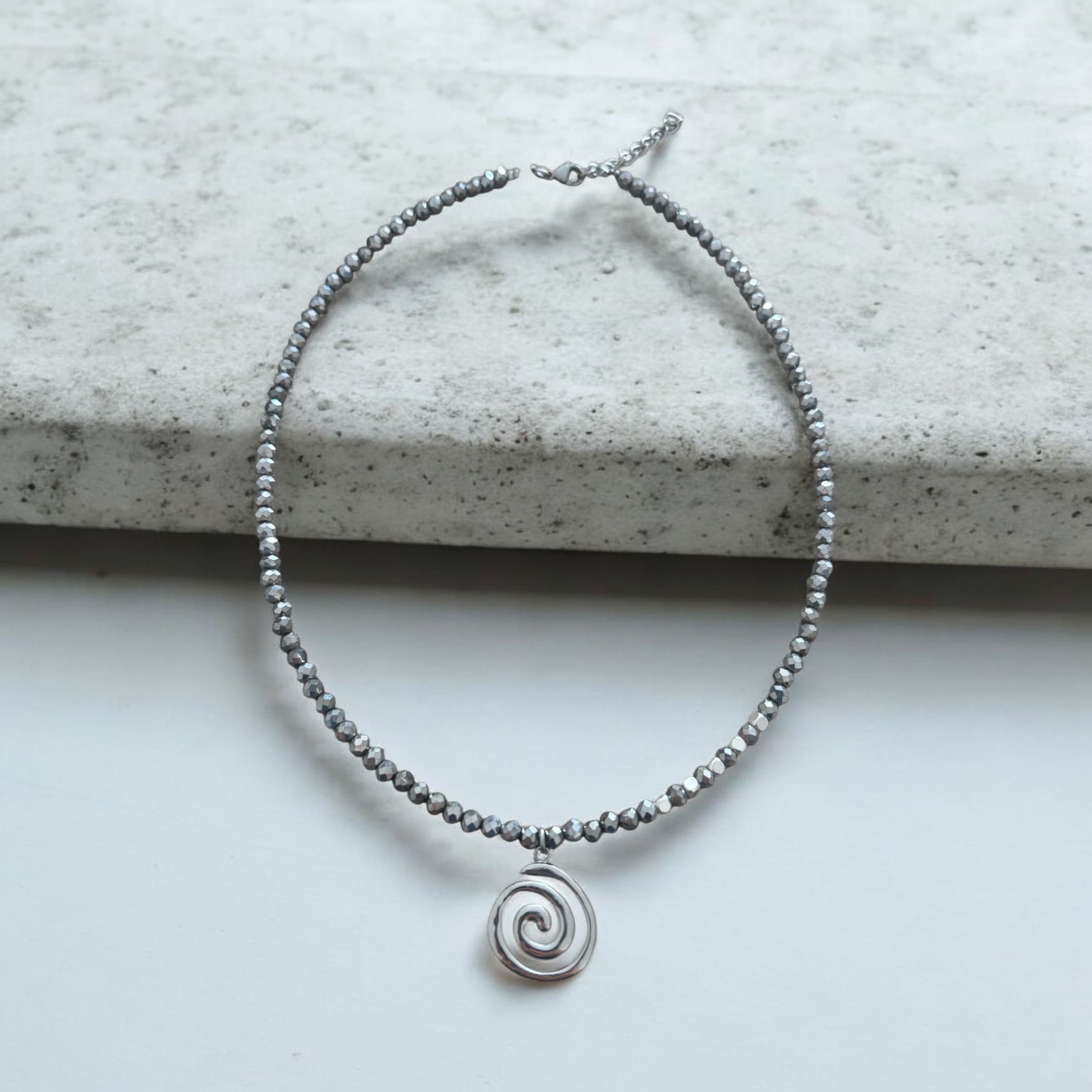 Χειροποίητο κολιέ με χάντρες κρύσταλλο σε ασημί χρώμα