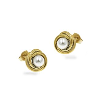 Σκουλαρίκια Ατσάλινα Φωλιά 12mm με Πέρλα 10mm χρυσό.